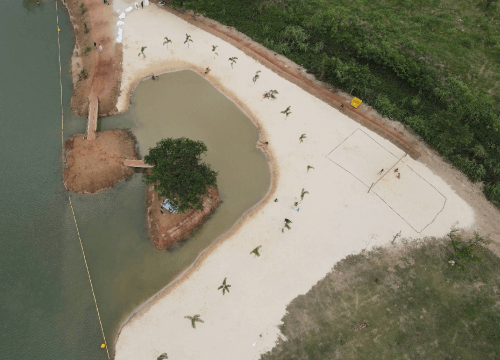 O coração do parque é a lagoa, com quase um quilômetro de extensão e profundidade significativa. Embora a natação não seja permitida, o espaço conta com uma prainha artificial que torna o contato com a água mais acessível e agradável. É um cenário perfeito para momentos de contemplação e descanso em família.